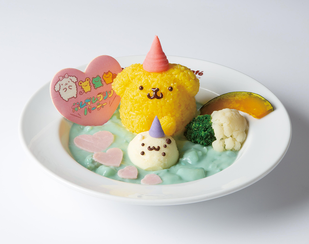 内容:普段のポムポムプリンカフェのメニューには載っていない、限定メニューのお食事「プリンからのハートいっぱいカラフルシチュー」と限定デザート(各店舗によって内容が違います。)を食べることができます。