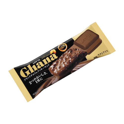 ブラックの箱とブラックのチョコ好きにはたまらない贅沢なチョコアイスバー「ガーナ贅沢仕立てブラック」は、ほどよいビターなチョコの味わじがたっぷりと楽しめるのが特徴。