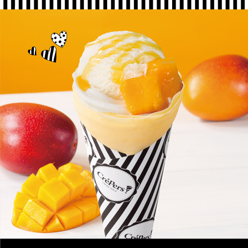マンゴの果肉とたっぷり生クリーム&バニラジェラートのクレープ誕生!