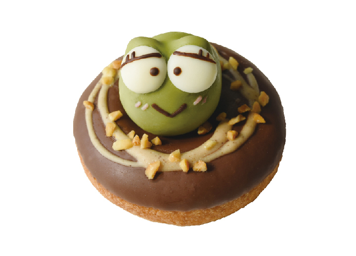 年齢問わず愛されるネイチャードーナツをベースに、こだわりのミルクチョコレートをコーティング。木の枝をイメージしたカフェラテ味のチョコと、クラッシュした有機アーモンドをトッピング。くりくりのお目々が愛くるしいけろっぴたちのお顔は、有機抹茶チョコレート♡