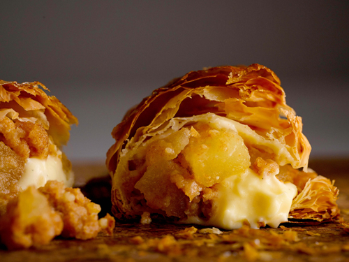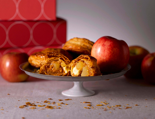 北海道札幌の人気洋菓子店「きのとや」で、30年間改良を重ねながら愛され続けているアップルパイを元に開発された「焼きたてカスタードアップルパイ」は、サクサクのパイの食感と、一度パイ生地を焼いてから入れる“後入れ”によるカスタードクリームの量の多さが特徴のアップルパイ。