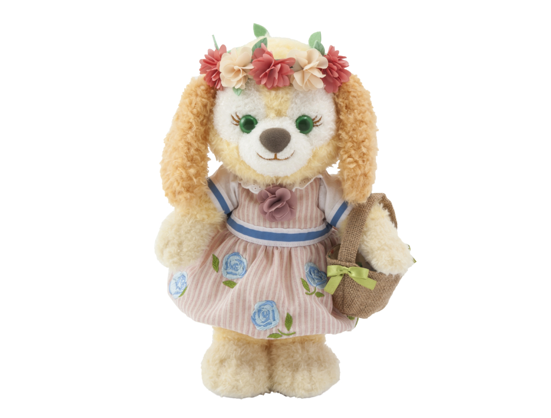 ダッフィー、シェリーメイ、ジェラトーニ、ステラ・ルー、クッキー・アンの可愛いぬいぐるみコスチューム。お花の飾りがついていて、春らしさいっぱい!