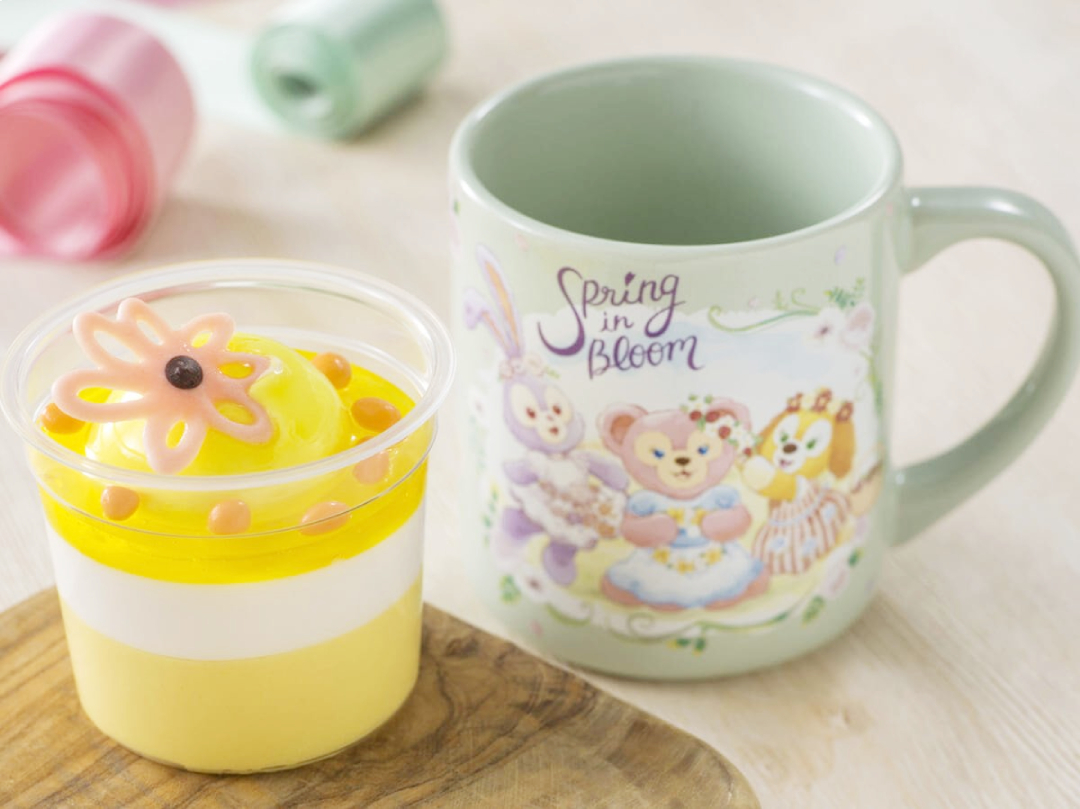 スーベニアカップの片面には、シェリーメイ、ステラ・ルー、クッキー・アンが、反対側にはダッフィーとジェラトーニが、それぞれお花畑で春を楽しむ様子が描かれているよ♡