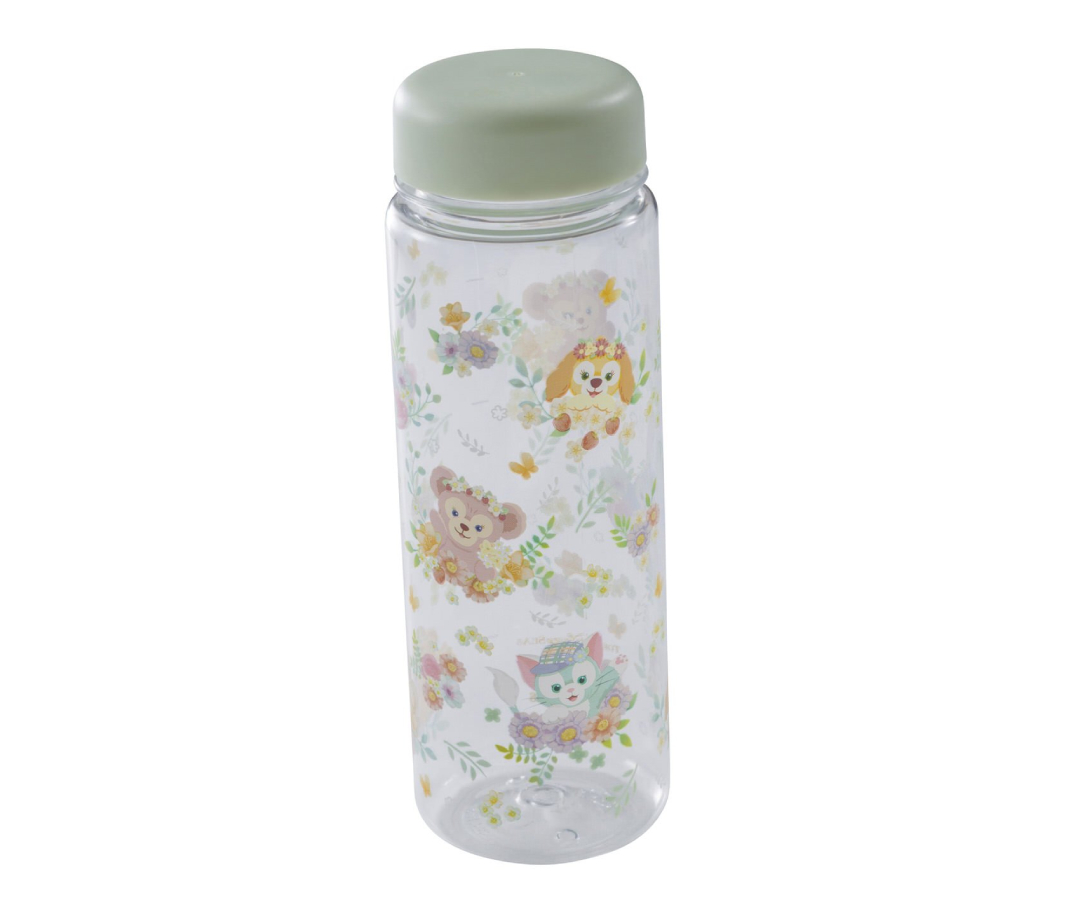 春らしい華やかなお花に囲まれたダッフィー&フレンズが描かれた、スーベニアドリンクボトル。中身が透けて見えるクリアボトルだよ♪
