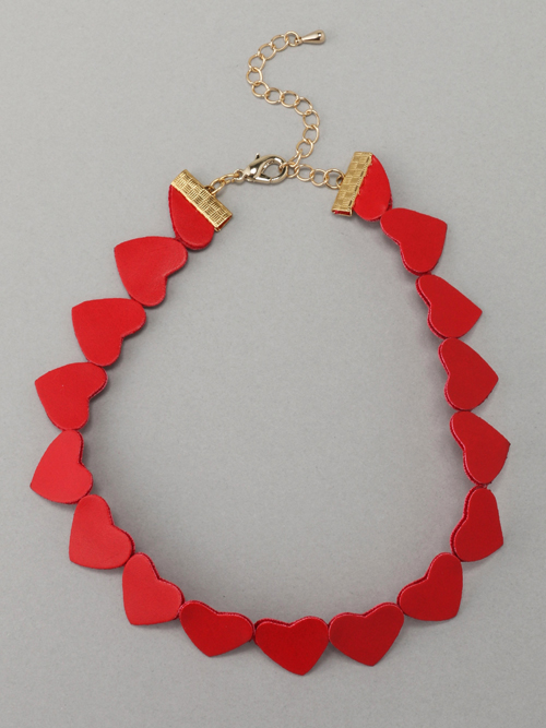 ハートモチーフを並べた愛らしいチョーカーは、大人ガーリーなアクセントとして活躍してくれそう。フェイクレザーのマットな質感も上品で軽く、ソフトなつけ心地も魅力。