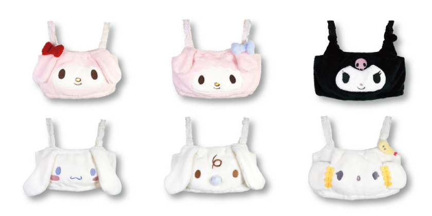キャラクターバリエーションはシナモロール、シナモロールのおともだちのみるく、こぎみゅん、マイメロディ、マイスウィートピアノ、クロミの6種類。