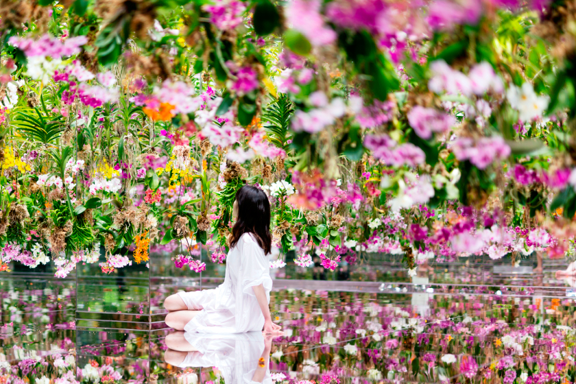【写真 18/21】東京・豊洲のチームラボプラネッツにて、春限定【桜】の作品が公開中!本物のランを13,000株以上使用した庭園作品「Floating Flower Garden」には、春咲きのランが登場♪<レポ>