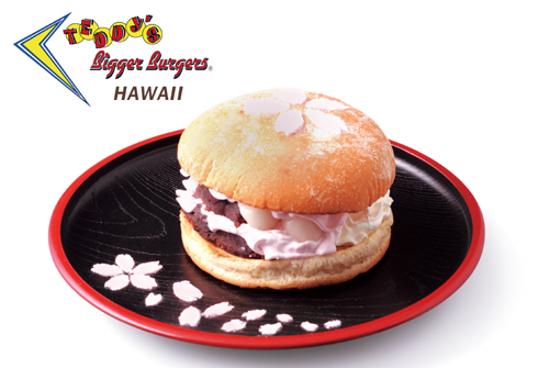 「桜バーガー」は、白玉につぶあん、苺フレーバーとプレーンの生クリームをたっぷりとサンドし、ほんのりピンクのパウダーシュガーで桜の花をデコレーションしたバーガー。甘さ控えめで、オリジナルバンズとの相性もぴったり。ペロリと食べられちゃう、和テイストスイーツバーガーだ。