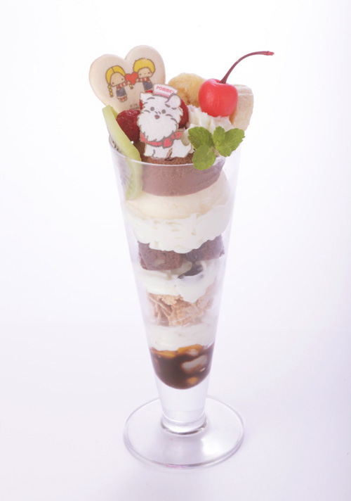 パティの愛犬ファジーのキウイ、バナナ、ラズベリーなどなど、フルーツがたっぷりと入ったチョコレートパフェ。