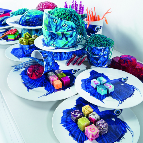 五感を刺激するデザインは、先端ファッションやストリートカルチャーに敏感な層を「もっとラウドな生き方」へと誘ってくれる。デジタルプリントによるリアルなプリント柄の食器やテーブルクロス、クッションカバー、ベッドリネンなど、約30のアイテムがラインアップ。