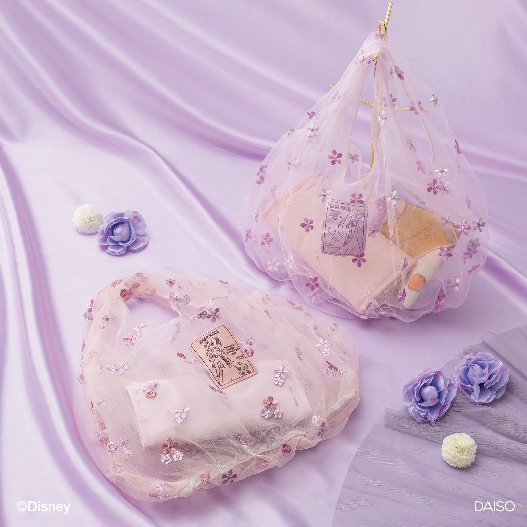 【詳細】ラプンツェルをイメージした淡いパープルとピンク、花のモチーフを基調としたデザイン♡ 全国の300円ショップにて「ラプンツェル」をイメージしたシリーズが新発売