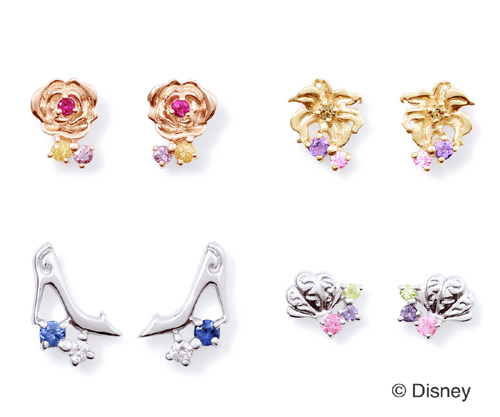 プリンセス ピアスはそれぞれのキャラクターをイメージしたカラーストーンと物語のキーとなるモチーフを組み合わせて華やかなデザインに仕上がっている。身に着けるだけでプリンセス気分を味わえるピアスは耳元をおしゃれに彩ってくれます。ネックレスとお揃いで着けてもいいかも。