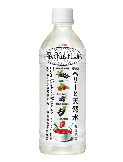 5つのベリーを煮込んだシロップを天然水と割った新ジャンル『フルーツウォーター』が「世界のKitchenから」シリーズより登場!