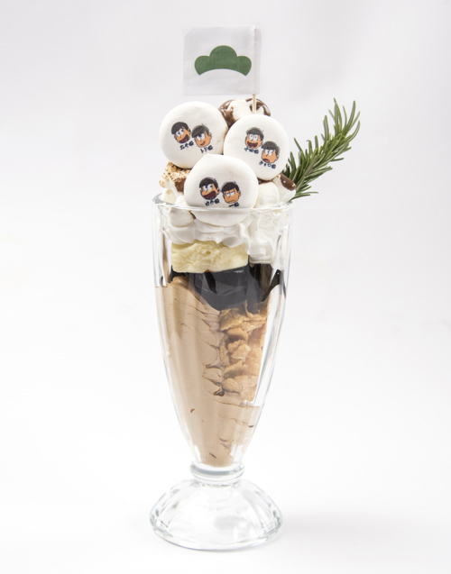 6人兄弟全員のマシュマロがトッピングされたパフェ。マシュマロとコーヒーの相性抜群の新食感パフェ。