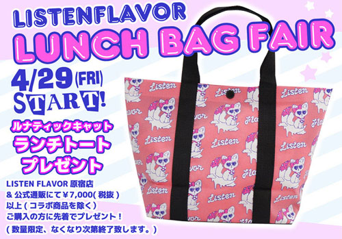 原宿店および、公式オンラインにて7,000円(税別)以上購入の方に、ノベルティー「ルナティックキャット ランチトート」をプレゼント♪