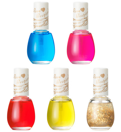 まるでジェルネールのようにぷっくりとした指先になれ、透明度の高いクリアカラーが楽しめる。その色合いはまるでサマーカクテルのよう。カラーのラインアップは、まるで南の海のような美しいブルーのオーシャンビューをはじめ、ストロベリーネオン、カンパリレッド、ヌーディーイエロー、ゴールドピーチの全5色。