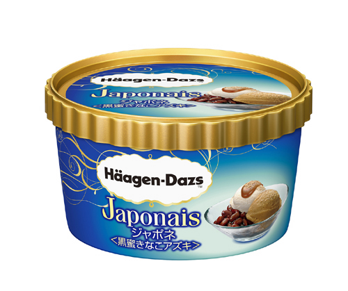 本商品は、ジャポネシリーズの第6弾。ハーゲンダッツ初となる黒蜜ソルベをベースに、和素材を練り込み、本格的な和風甘味の味わいを再現。豊かな風味の黒蜜ソルベにしっとりとした小豆粒を組み合わせ、濃厚で滑らかなミルクアイスクリームと、黒蜜と相性バツグンのきな粉ソースを重ねた上品な味わい。