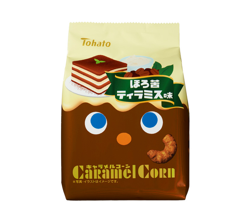 「キャラメルコーン・ほろ苦ティラミス味」は、焙煎コーヒーのほろ苦さ、マスカルポーネチーズのまろやかなコク、生クリームのミルク感のハーモニーが楽しめる☆