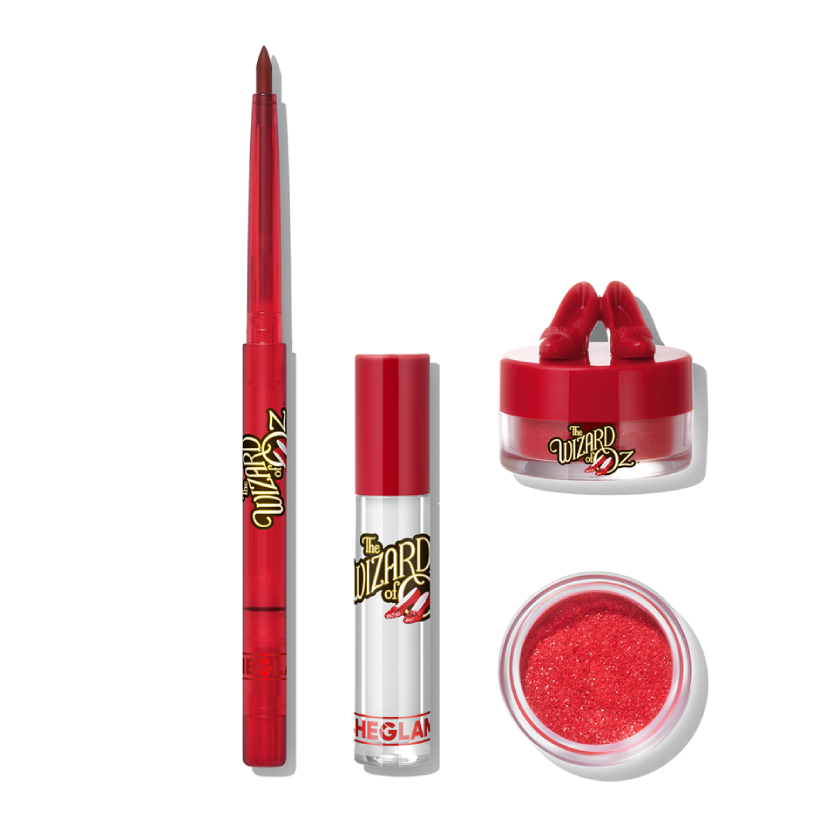 物語のヒロイン・ドロシーをイメージした「Ruby Slippers™ Glitter Lip Kit」は、リップライナー、グリッター、ベースの3点セット。簡単に華やかでふっくらとした口元を演出。