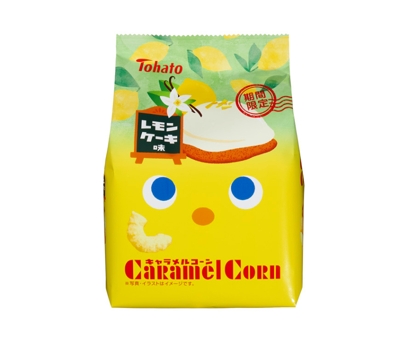 【詳細】初夏限定「キャラメルコーン・レモンケーキ味」が発売中!瀬戸内産レモンの爽やかな酸味とホワイトチョコレートの甘さに、ほんのり香るバニラをプラス♪