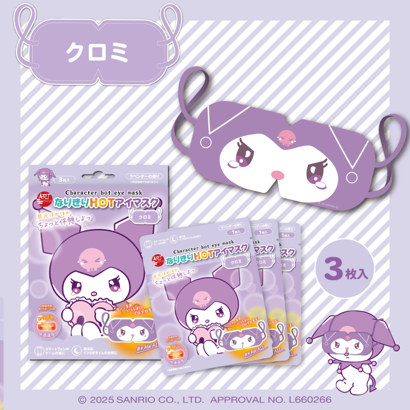 【写真 4/8】シナモン、キティ、クロミの“うるうる涙の甘えんぼフェイス”が可愛い♡ 目元をあたためてリフレッシュ!使い捨て温感マスク『なりきりHOTアイマスク』に新しい仲間が登場!