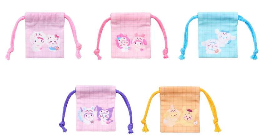 ・ポシェット(ちいかわ&ハローキティ、ハチワレ&シナモロール、うさぎ&ポムポムプリン、モモンガ&クロミ、古本屋&マイメロディ 全5種)/各2,794円(税込)
