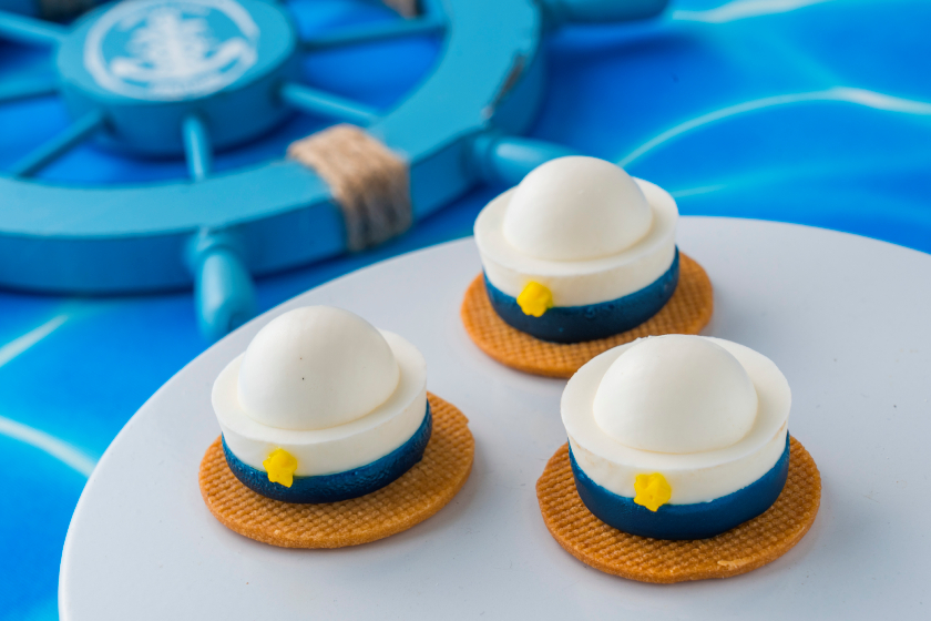 甘酸っぱい乳酸菌テイストのドリンクでご用意するムースにグレープフルーツのジュレを忍ばせ、クルーの帽子をイメージした「マリンキャップ」など、夏らしいマリンモチーフのスイーツもビュッフェ台を彩る♡