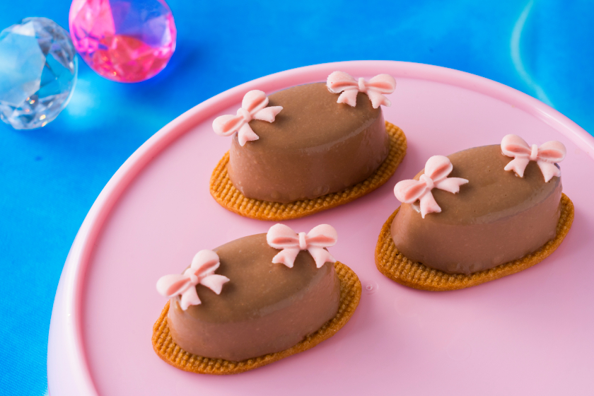 爽やかなヨーグルトのムースにブルーベリーのジュレを忍ばせた「夏のお空の雲の上」は、大きな耳で空を飛ぶことが出来る“シナモン”が、雲の上でカモメと一緒に遊んでいる様子をイメージ。
