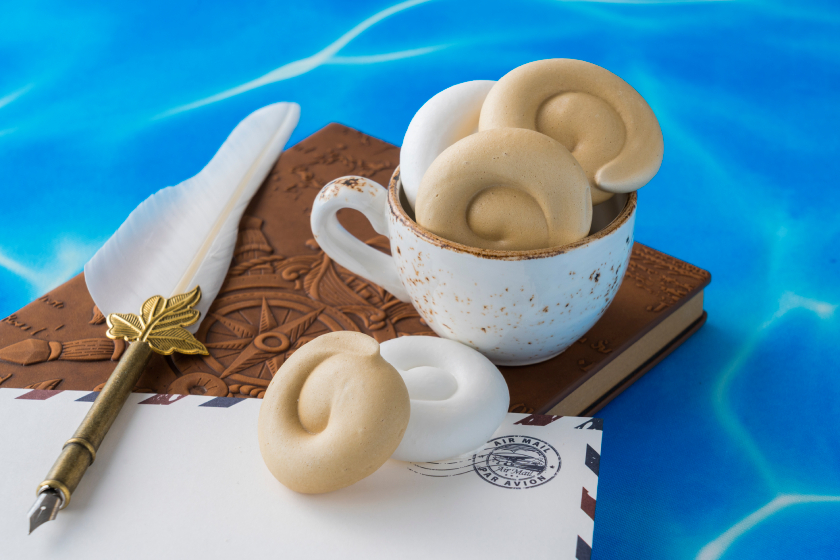 「エスプレッソ」のこだわりの耳を表現した、サクサクのメレンゲスイーツ。コーヒー風味とレモン風味の2種類をご用意。