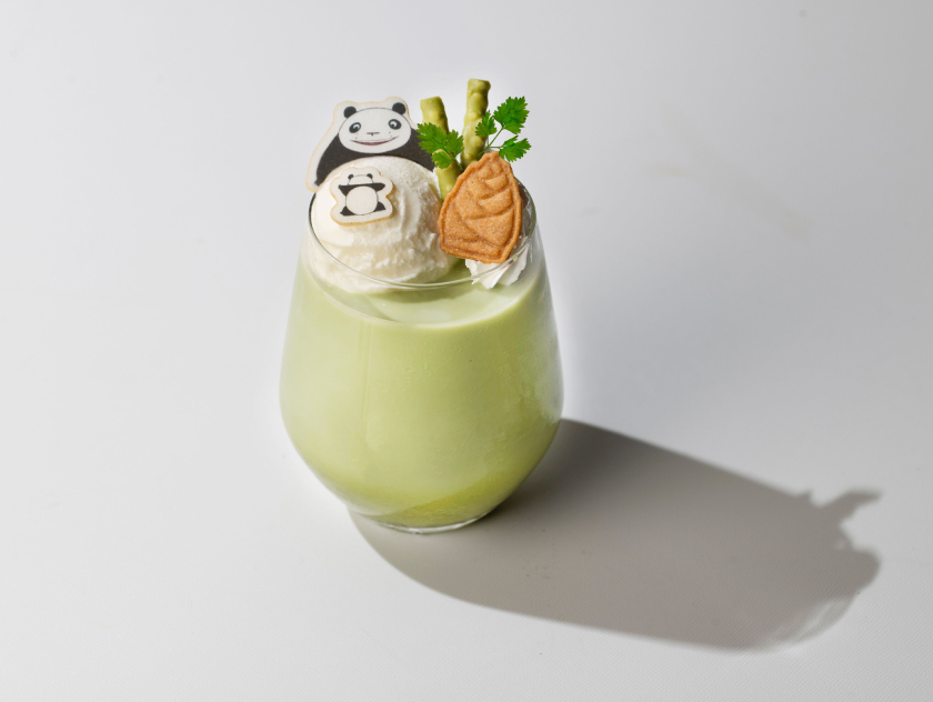 大好きな竹やぶに囲まれて楽しく生活しているパンちゃんとパパンダをイメージした、抹茶ミルク。