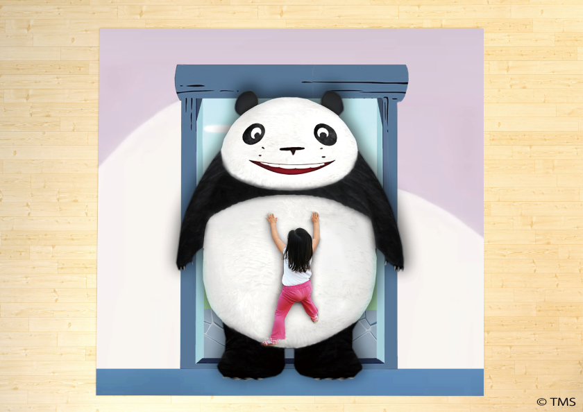もこもこした大きなパパンダの体にパンちゃんが飛びつくあの名シーンを再現。会場天井にカメラが設置されているので、シーンの再現写真を撮影、その場でデータにして持って帰ることができるよ。おなかの柔らかさは体験必須!