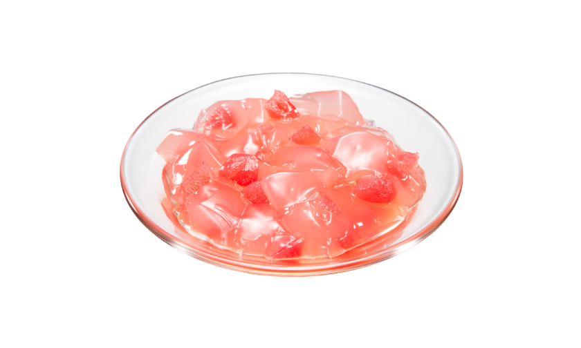 大粒の角切りピーチ果肉がごろっと入ったピーチゼリー。ぷるるんとしたゼリーの食感と、シャキシャキとした果肉の食感が楽しめちゃう。「マンゴーピーチ阿里山 ジェラッティー」や「マンゴー阿里山 ティーエード」、「阿里山ウーロンティー」へのトッピングは特におすすめ。