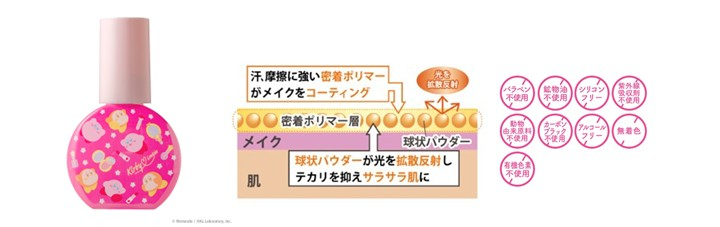 汗、摩擦に強い密着ポリマーがメイクをコーティング。球状パウダーが光を拡散反射し、テカリを抑えたサラサラなマット肌に導く♪
