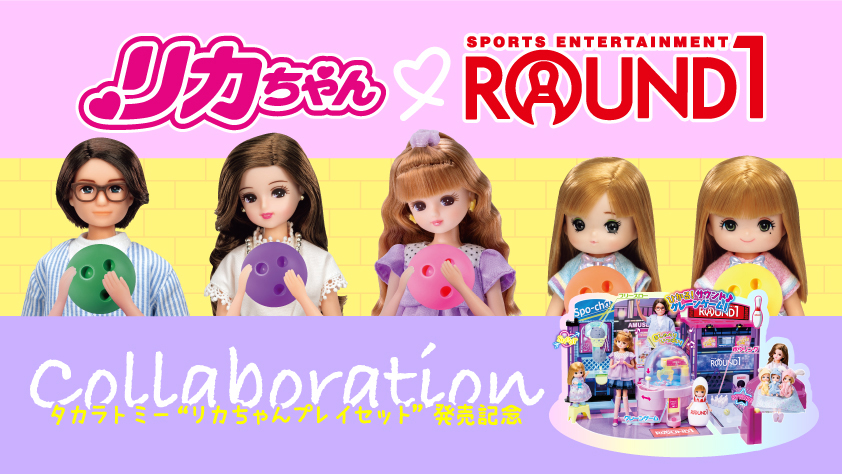ROUND1とリカちゃんがコラボした、「リカちゃん」サイズのクレーンゲーム・ボウリング・スポッチャが実際に遊べるプレイセット「リカちゃん にぎやかイルミクレーンみんなでいこうよラウンドワン」の発売を記念したROUND1初のリカちゃんコラボを全店で開催☆