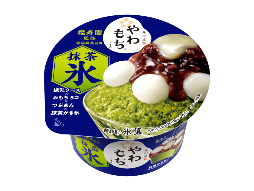 今年5月にリニューアルした『やわもちアイス 抹茶氷』。抹茶かき氷×おもち×つぶあん×練乳ソースの4層構造という贅沢さはそのままに、さらにおいしく生まれ変わったよ。『やわもちアイス いちご練乳氷』同様、おもちは白玉粉に加えてもち粉をブレンドし、よりやわらかくもち本来の風味を楽しめる食感に。氷部分はおいしくて透明度の高い天然水の氷「美里氷室」を使用し、宇治抹茶の配合率を25%増やすことで、抹茶の味わいをより感じられちゃう。さらにつぶあんの甘さを抑えることで、最後まで飽きのこないすっきりとした食べやすい仕上がりに☆