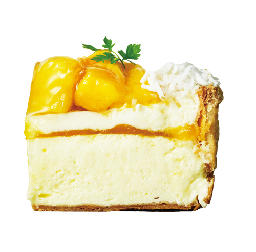チーズタルト生地にマンゴージャムとココナッツが香る生クリームを重ね、夏らしいトロピカルさが口いっぱいに広がる。
