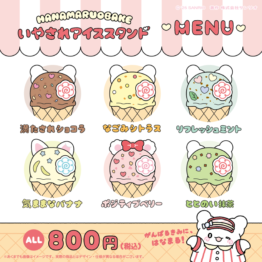 2023年にデビューした「はなまるおばけ」の“まるまる“は、「今日もがんばった“あなた”にハナマルをくれる、不思議なおばけ」。今回、はなまるおばけたちが暑い夏も毎日がんばっている人にハナマルを届けるためにアイススタンドを企画。販売するアイスは全6種類で、「心を穏やかにしてくれる“気ままなバナナ”」や「気分をアップ!“ポジティブベリー”」など、その日の気分に寄り添うフレーバーをラインアップ。トッピングには、はなまるおばけたちの耳を表現したモナカやはなまるのアイシングウエハースを乗せ、つい写真を撮りたくなる可愛さをお届け。さらに期間中、まるまるが「ハラカド」館内をお散歩するグリーティングイベントも実施。