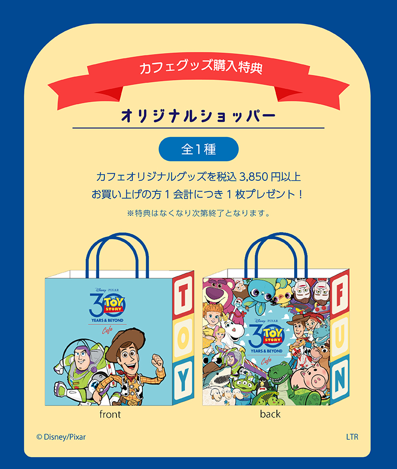 ②カフェグッズ購入特典:物販コーナーで3,850円(税込)以上購入した方に「オリジナルショッパー」を1会計につき1枚プレゼント。※無くなり次第終了