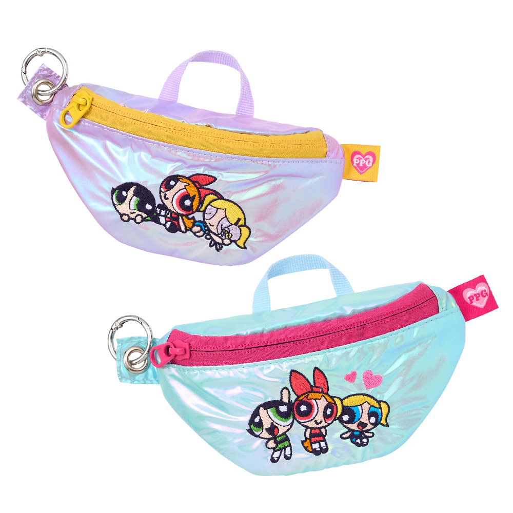 シャイニーな素材感が目を引く、「THE POWERPUFF GIRLS パワーパフ ガールズ」のウエストポーチ風デザインのミニポーチ。カラビナ付きなので、バッグやリュックに取り付けて持ち運ぶことができちゃう。リップやイヤホン、鍵などの小物をすっきり収納できてとっても便利。毎日持ち歩きたくなる、見た目も機能性もバッチリなアイテム。