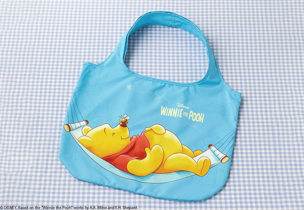 ハンモックに寝そべる「プーさん」が可愛いエコバッグ。荷物もたっぷり入るサイズで使い勝手抜群。コンパクトに折りたためるので、エコバッグをカバンにしのばせていつでも一緒にお出かけできちゃう。