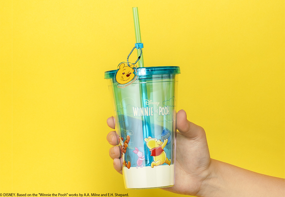 夏にぴったりな透け感がたまらない『クリアタンブラー』。いつも一緒に冒険をしている仲間の「ピグレット」や「ティガー」と一緒にビーチをかけまわる「プーさん」を描いた、360°どこからみても可愛いデザイン。ファニーフェイスがキュートなストローチャームがついて、細部までこだわりたっぷり。