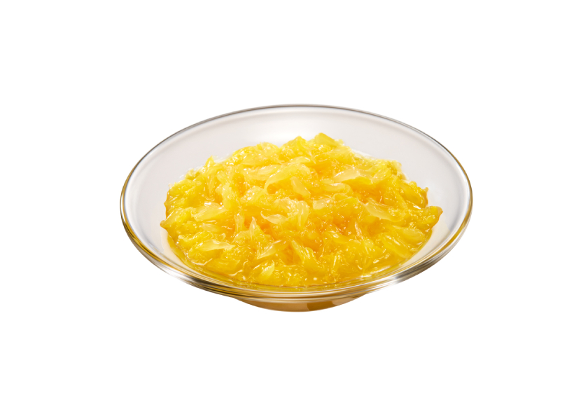 ダイス状にカットしたマンゴー果肉の、ほどけるような食感が堪能できるトッピング。芳醇な果肉の存在感で、トロピカル&贅沢な味わいに。「ピーチ阿里山 ティーエード」や「阿里山ウーロン アーモンドミルクティー」のほか、季節のおすすめ「ジャスミングリーン ミルクティー」にもマッチ!つぶつぶオレンジ果肉