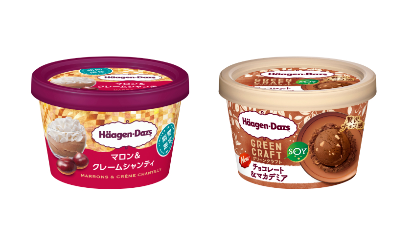 ハーゲンダッツ ミニカップ『マロン&クレームシャンティ』、GREEN CRAFT(グリーンクラフト) ミニカップ『チョコレート&マカデミア』が期間限定で発売!