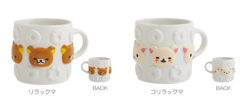 リラックマとドーナツのレリーフが可愛いマグカップ。陶器製。