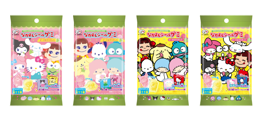 不二家「ペコ×サンリオキャラクターズなかよしシールグミ(ピーチ&マスカット)」が発売!全23種の可愛いシール付き♡