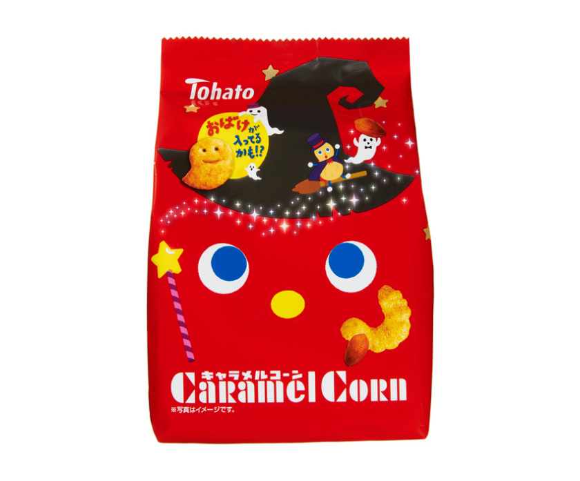 ふんわり、サクサク、そしてすうっととろける「キャラメルコーン」は、魔法使いに仮装したキャラクターをデザインした、ハロウィン限定パッケージで登場♪