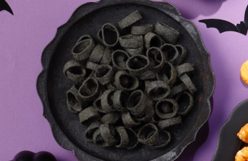 軽快な食感と指にはめて食べるのが楽しいポテトリングスナック「ポテコ」からは、黒い生地で、通常のポテコの約1.5倍のでっかいサイズ(標準体積比)になった「でっかい!ブラックポテコ・やみつきカレー味」が登場。スパイスの香りと、ビーフとオニオンの旨味がやみつきになるハロウィン限定フレーバー☆