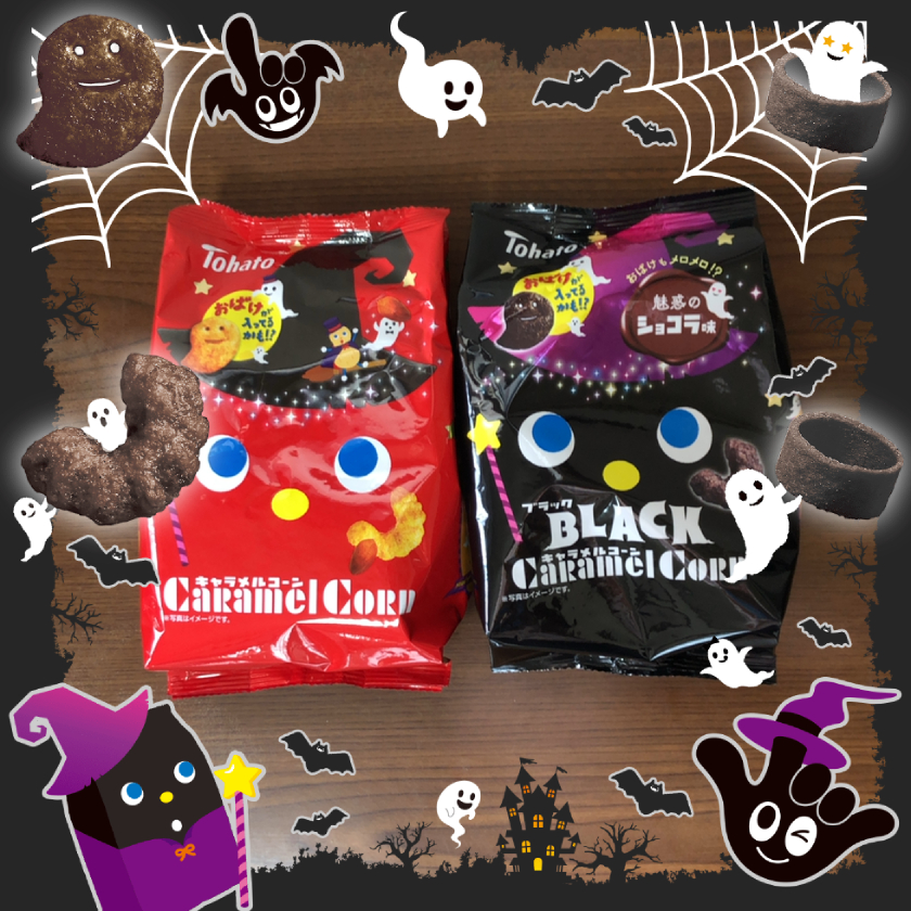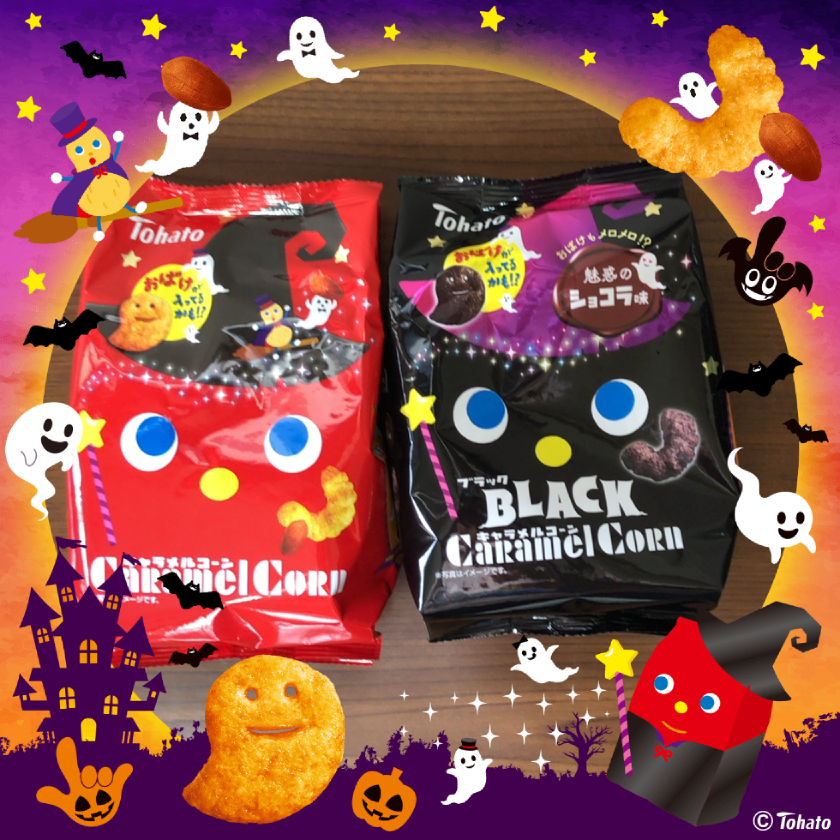 【詳細】おばけのいたずらで、黒色になっちゃった!?東ハトから「キャラメルコーン」「ポテコ」のハロウィン限定商品が新発売♪