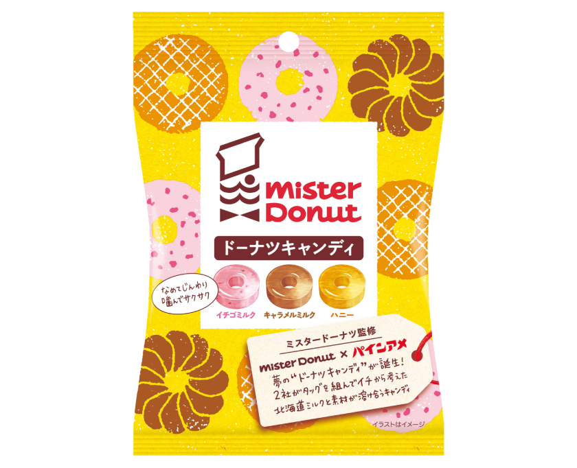 【詳細】ミスタードーナツとパインが初コラボ!『ドーナツキャンディ』が新発売!「イチゴミルク」「キャラメルミルク」「ハニー」の3種類♪