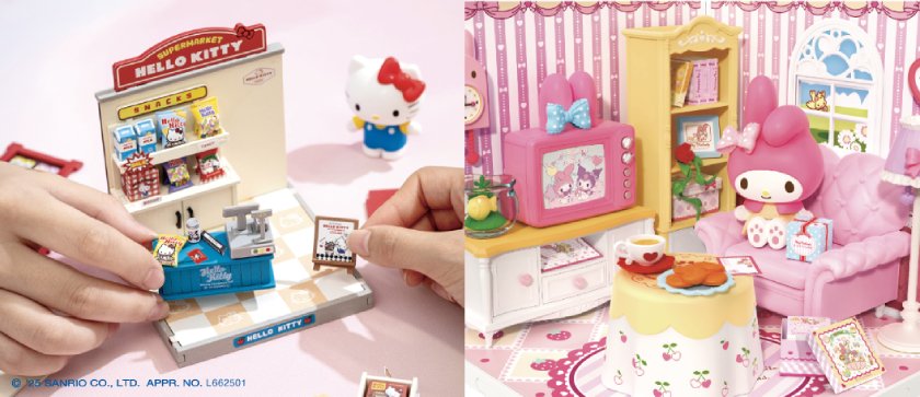 【写真 2/8】「つくるんです®」からサンリオキャラクターズコラボアイテムが登場!「マイメロディのケーキ屋さん」などミニチュアハウス8種類と、「シナモロールのメリーゴーランド」などオルゴールで動く仕掛け付きのウッドパズル2種類♪